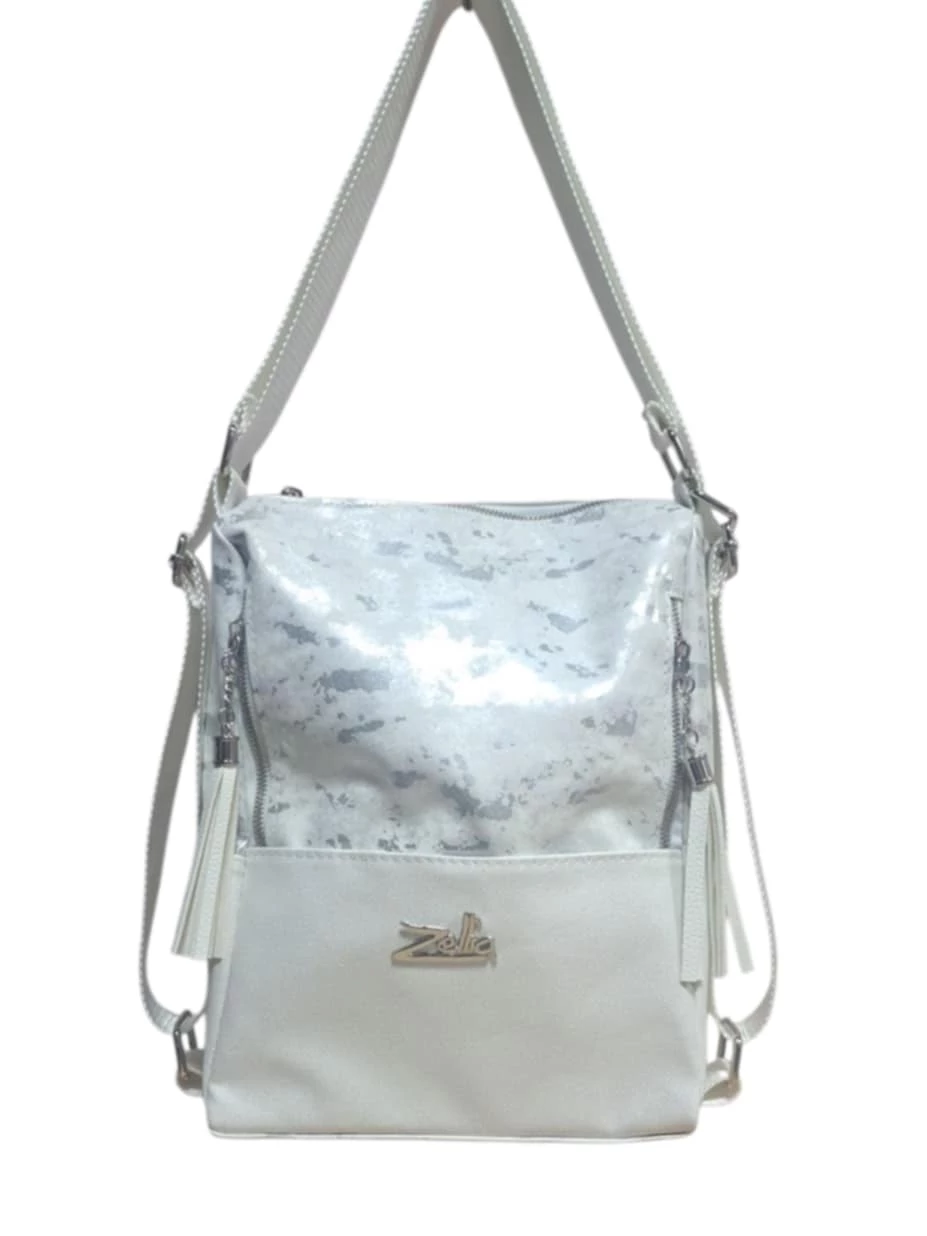 Zellia fehér/ezüst háti-és válltáska